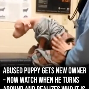 Abused puppy gets new owner – now watch when he turns around and realizes who it is