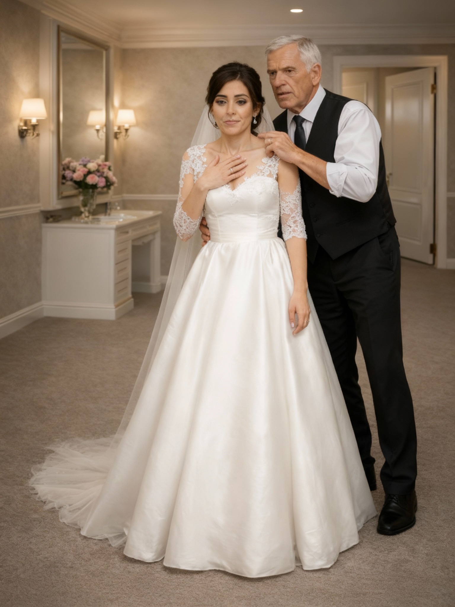 Nina stepped into the restroom for a moment of quiet, overwhelmed by the weight of becoming a bride. Music and laughter echoed from the hall, yet she felt only unease. As she adjusted her veil, an elderly cleaner named Michael stopped her with a warning that froze her blood: “Don’t drink from your glass. Your groom put something in it.” His words lingered as she returned to the celebration, her heart pounding, her mind racing with doubt about the man she was about to marry.