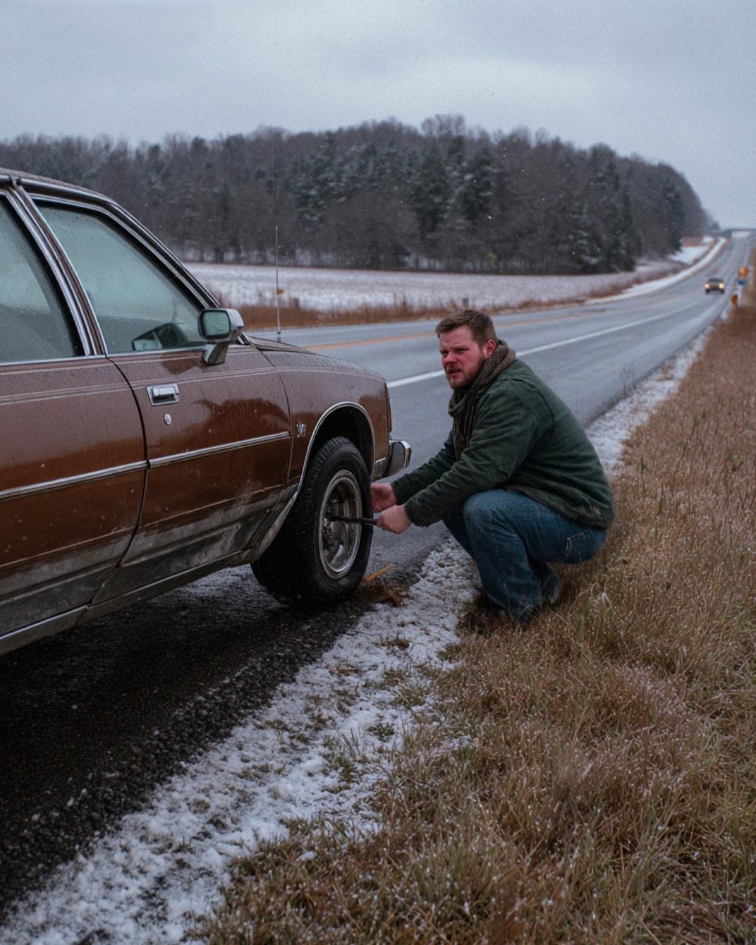 I never imagined a flat tire on a snowy highway would change the direction of my life. At the time, it was just me and my daughter, Emma, heading to my parents’ for Thanksgiving. As a single dad since she was three, I had built our world from scratch—packing lunches, learning ponytails, and navigating the quiet ache her mother left behind. That day, the snowfall was soft but dangerous, turning the highway into a sheet of white glass. Emma sang in the back seat, already dreaming of pumpkin pie, when I spotted an elderly couple stranded on the shoulder beside a completely flat tire. Their thin jackets and worried eyes made it impossible to drive past.