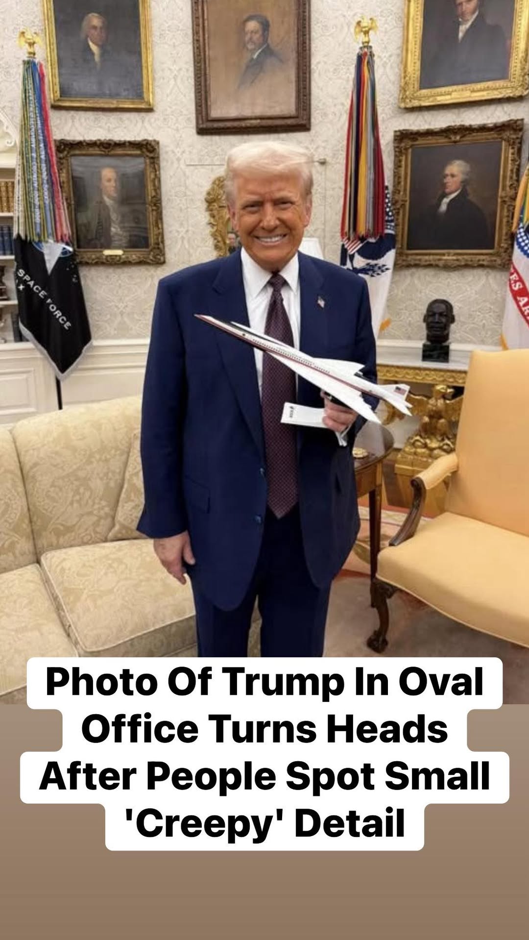 A new photo of former President Donald Trump inside the Oval Office set social media on fire—not just because he’s holding a scale model of Boom Aero’s Overture One supersonic jet, but because of something unexpected hiding in the background. In the image, Trump poses proudly with the sleek aircraft model, fueling speculation that the future Air Force One could be a supersonic upgrade. Boom Aero’s prototype, the XB-1, recently broke the sound barrier at 844 mph, earning the Overture One the nickname “the son of the Concorde.”