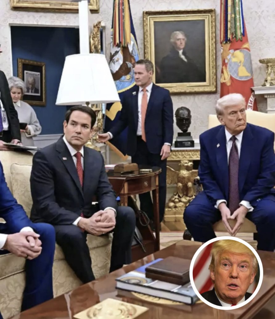 A photo taken during President Donald Trump’s February 13 meeting with Indian Prime Minister Narendra Modi has stunned viewers—revealing Trump’s mug shot framed in gold and displayed near portraits of historic leaders like George Washington and Franklin D. Roosevelt.