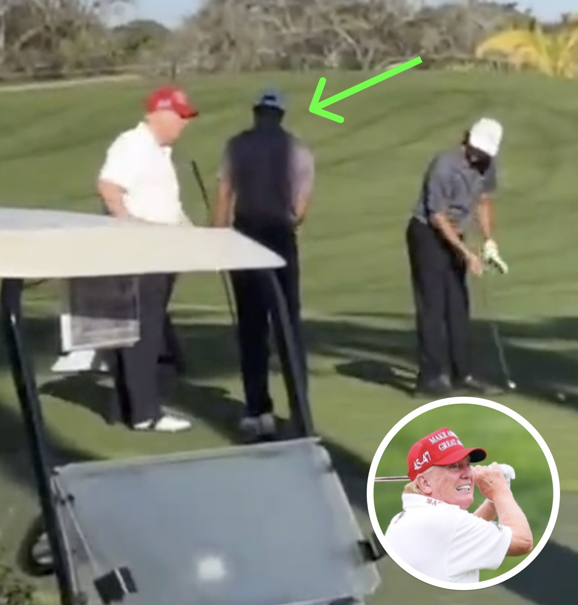 🚨President Donald Trump playing golf this morning at Trump International Golf Club in Palm Beach with Tiger Woods and his son, Charlie.