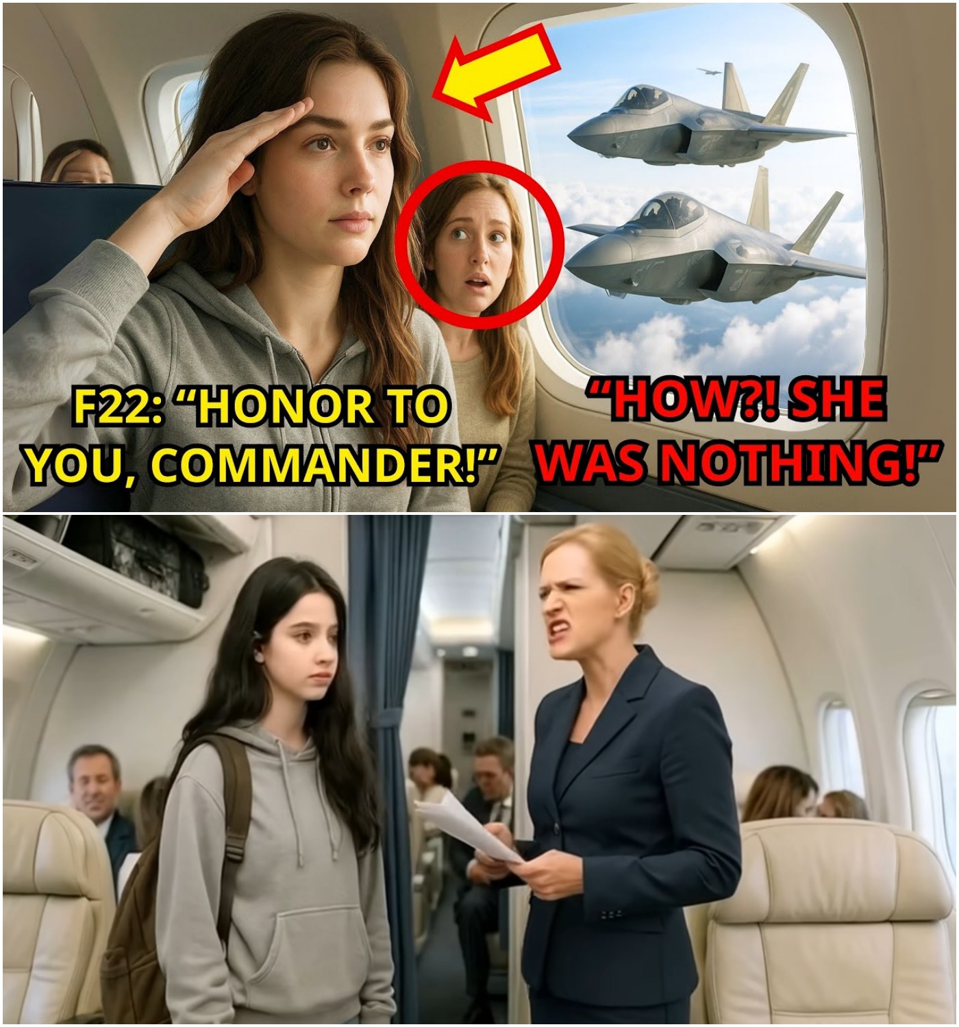 Passengers froze. Rachel rose, backpack slung over her shoulder, steps steady, calm—an air of authority unmistakable. Outside, F-22 pilots snapped to attention, saluted, and whispered her name with reverence. Former mockers turned pale. A young pilot handed her helmet; she donned it with practiced ease.