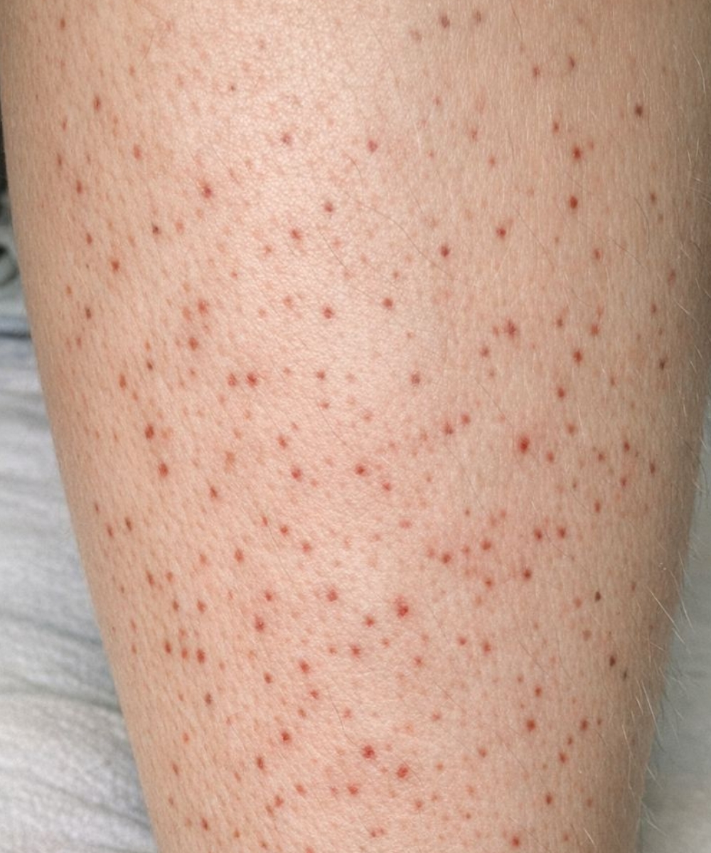 The spots may be petechiae—tiny red or purple dots caused by small blood vessels leaking under the skin. One possible explanation is Schamberg disease, a mild and usually harmless condition affecting the lower legs. Other causes include allergies, circulation issues, infections, or inflammation. Pressing gently on a spot to see if it fades, tracking changes, and taking dated photos can help you understand what’s happening.
