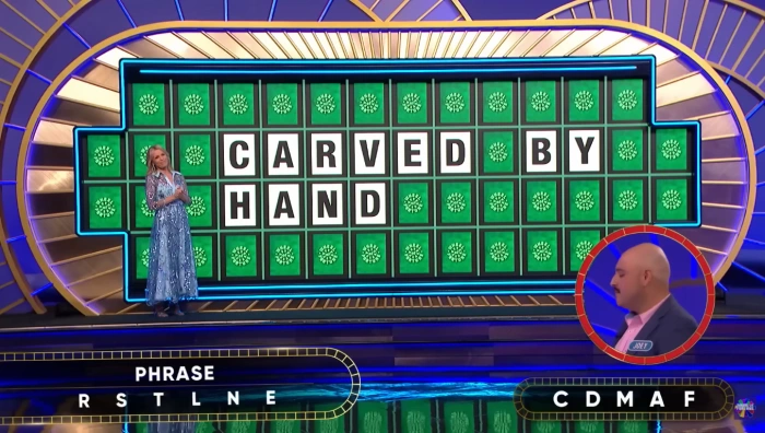 With most of the board filled in, the puzzle read: “CA_ED’ _Y _AND.” After choosing the letters C, D, M, and A—plus an extra “F” from his Wild Card—Sweet confidently guessed, “Cleared by hand.” The response sounded logical, but as the clock expired, it became clear the solution was incorrect. The correct phrase, “Carved By Hand,” surprised both Sweet and the audience, proving just how deceptive bonus-round puzzles can be.